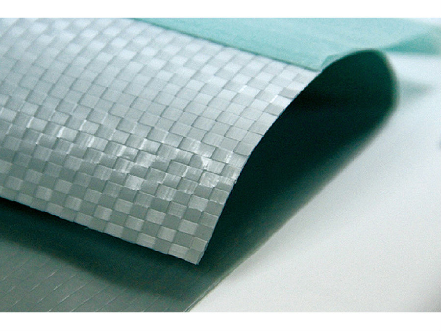 淋膜編織布是由編織布、單層或雙層復合層部分構成,其幅寬可達4.2m,經過印刷、復卷、包裝等工序獲得的一種包裝產品,其編織層是利用聚乙烯或聚丙烯原料通過熔融,平模頭擠出片膜,經過定向取向,獲得優異的抗拉伸性能,良好的承重能力;復合層使用聚乙烯及聚丙烯(或其他雜質)的混合物,經過熔融,平模頭擠出流延膜,在高溫未冷卻的時候粘接在編織布層,以達到防潮、抗老化、防銹、透氣等性能。